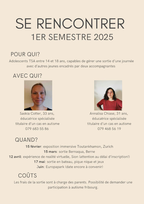 Pour adolescents TSA entre 14 et 18 ans, capables de gérer une sortie d’une journée avec d’autres jeunes encadrés par deux accompagnantes.