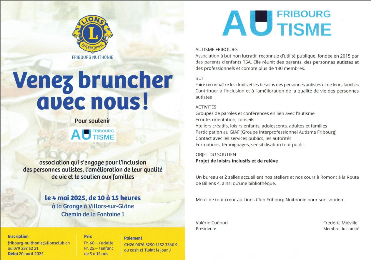 Organisé par le Lions Club Fribourg-Nuithonie afin de soutenir notre association.